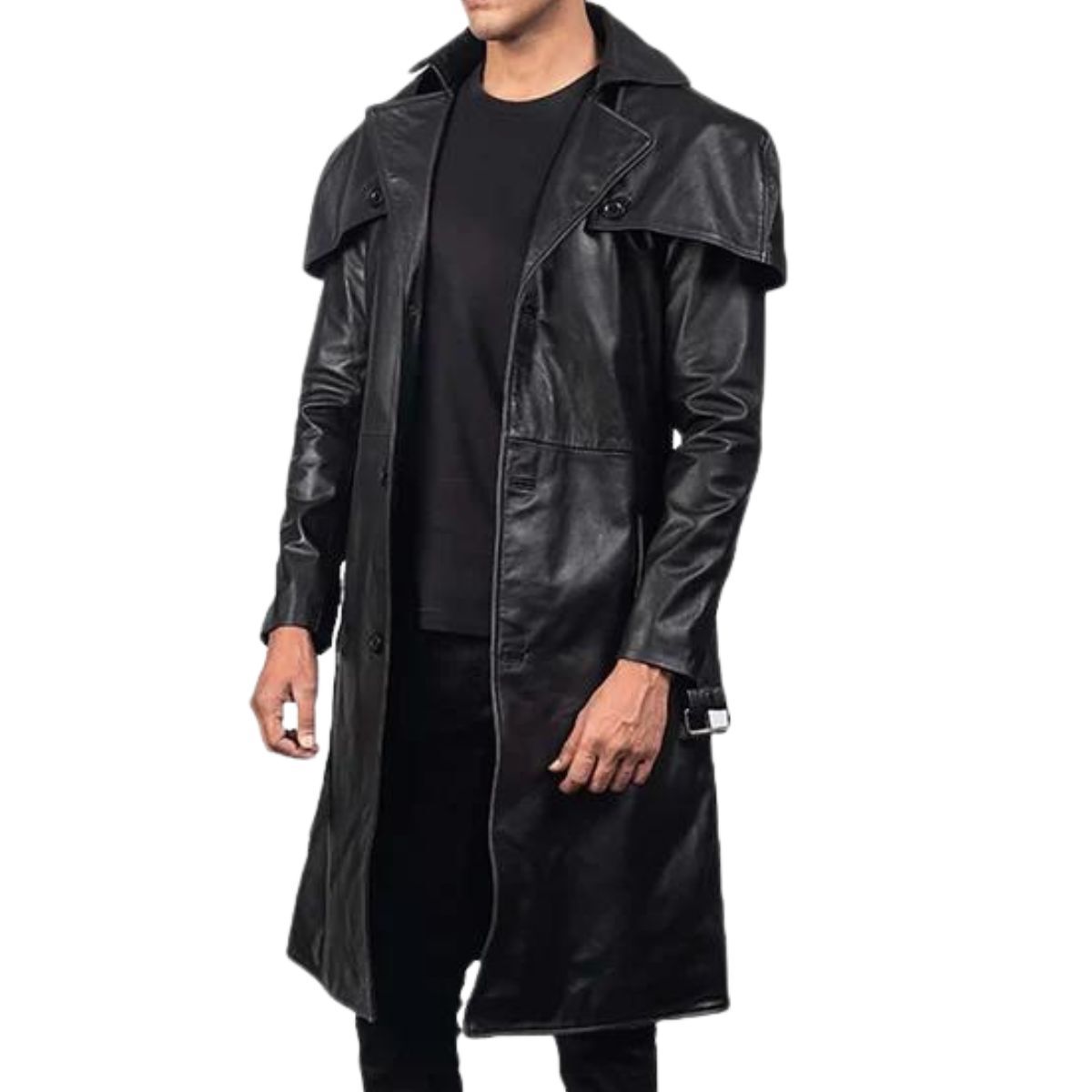 Regal Enigma Leather Coat, a masterpiece of craftsmanship designed for those who appreciate the finer things in life. This exquisite coat is tailored from premium quality leather, offering a sumptuous feel and an impeccable fit. Its timeless design features a sophisticated brown hue that exudes elegance and a long, flowing silhouette that gracefully envelops the body. Perfect for both casual and formal occasions, the Regal Enigma Leather Coat is not just a piece of apparel but a statement of style and sophistication.