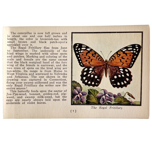 Primary image for Regal Fritillary Butterfly 1934 Butterflies Of America Insect Art PCBG14C