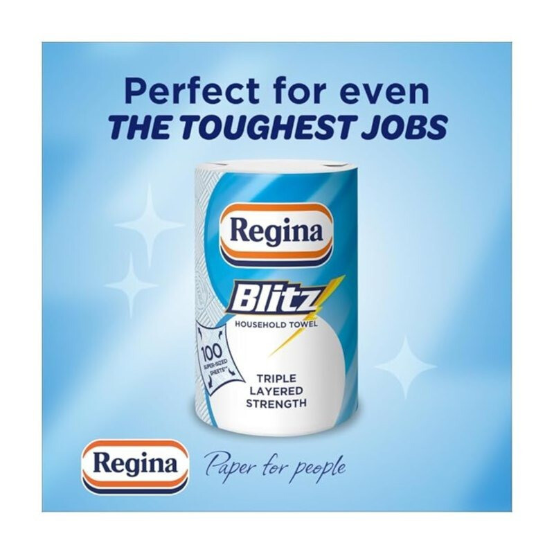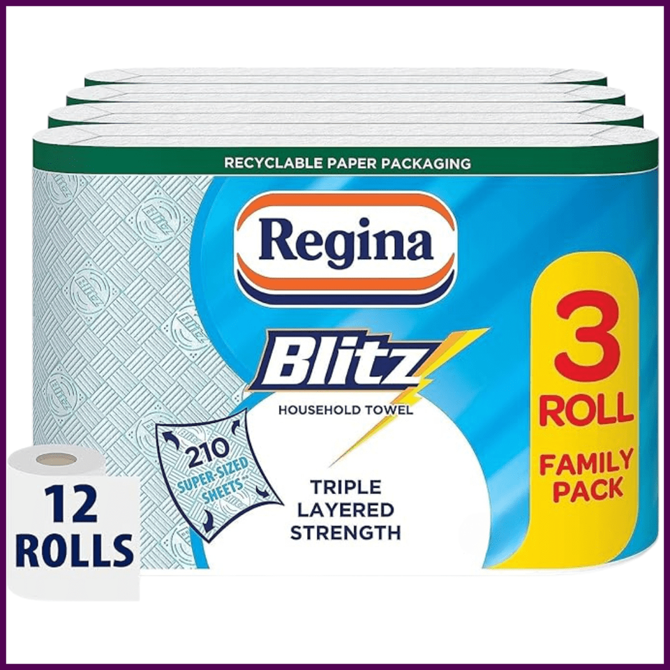 - Regina Blitz Kitchen Roll – 12 Rolls, 3-Ply, Extra Large Sheets, Streak-Free