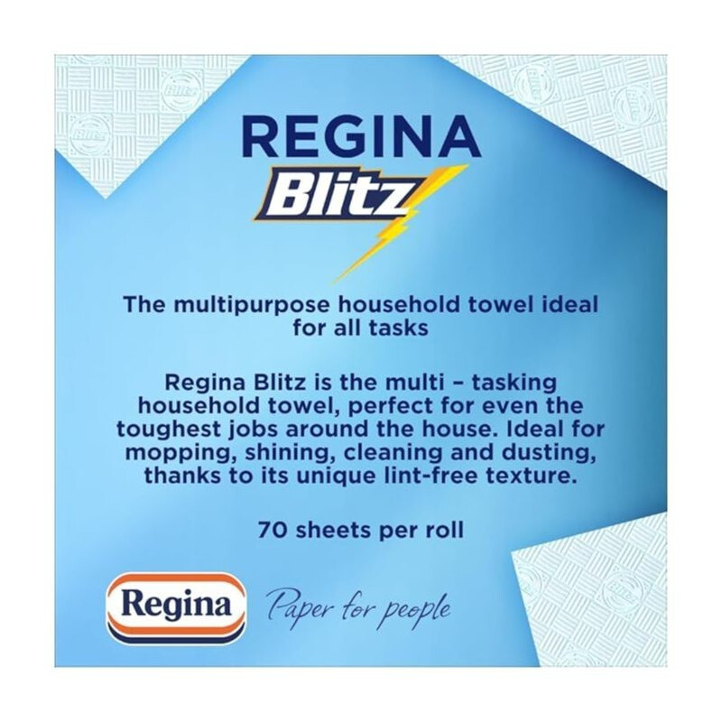 Whether you?re wiping down kitchen counters, cleaning appliances, or shining glassware, Regina Blitz Kitchen Rolls deliver streak-free, scratch-free results every time.