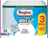 Regina Blitz Household Towels ? 12 Rolls Per Pack, 3-ply Kitchen Roll, 70 Sheets Per Roll, Paper Packaging, Recycled, Ultra-Resistant, Streak-Free Cleaning, Scratch Protection
