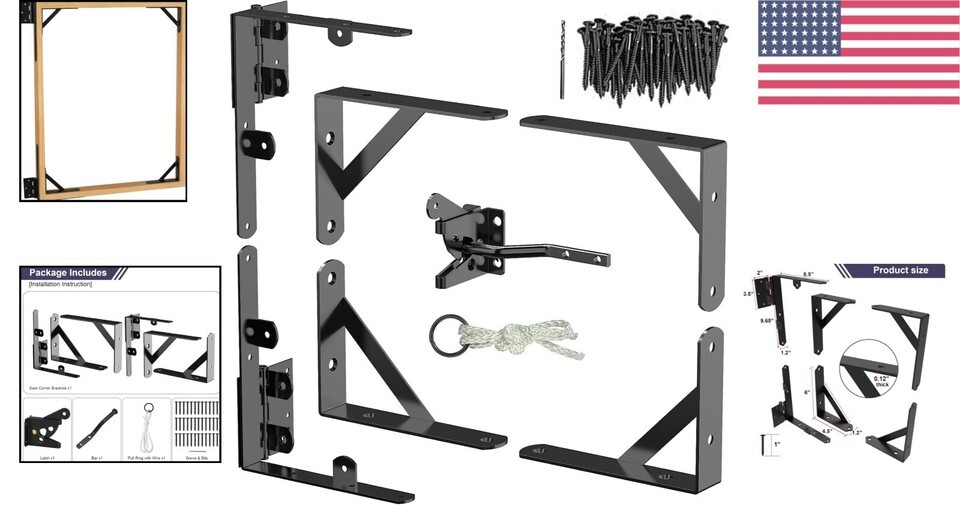 - Reinforced Gate Hardware Kit with Anti-Sag Bracket and Durable Steel Hinges