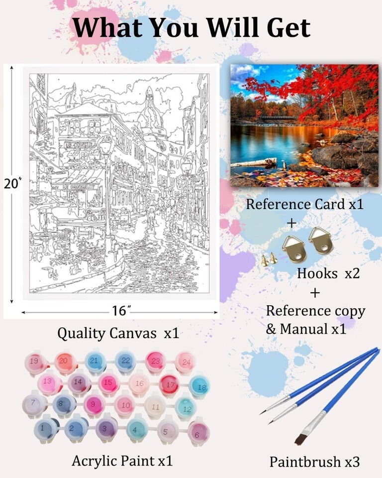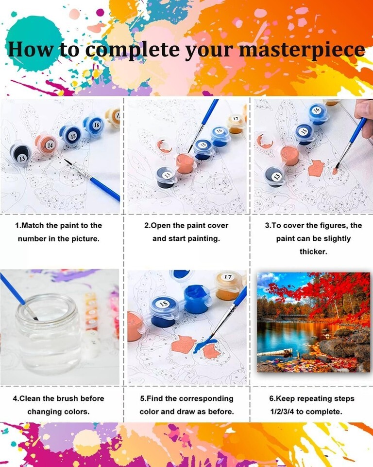 This exquisite paint by numbers set captures the enchanting scenery of Maple Park on high-quality canvas. Once completed, you?ll have your very own masterpiece to adorn your home, bringing the tranquility and beauty of nature indoors.