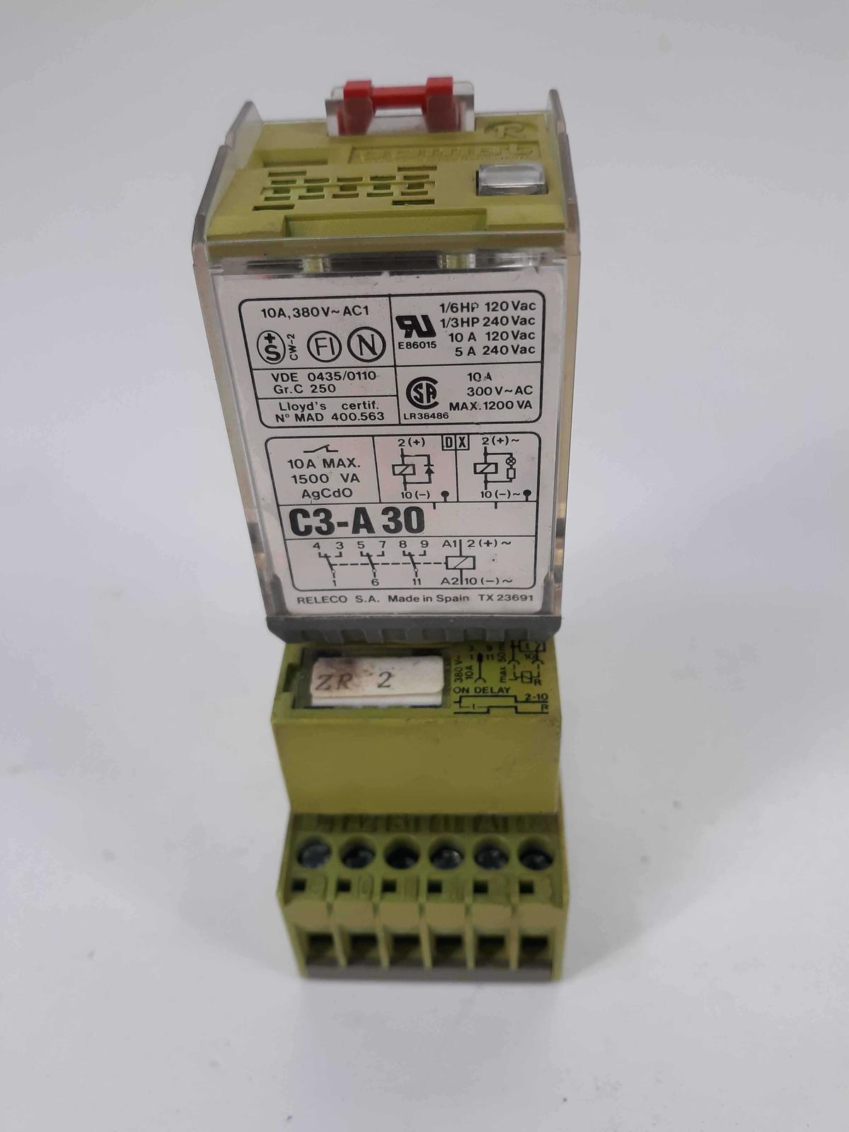 - Releco C3-A 30 Relay 120-240VAC 10A W/CT3-E20/H & CS-11 Comat Sockets