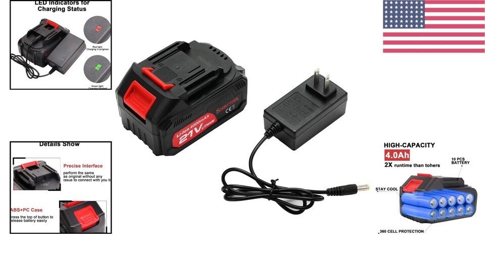 - Reliable 21V Lithium Battery with Charger - 4.0 Ah for Enhanced Tool Performance