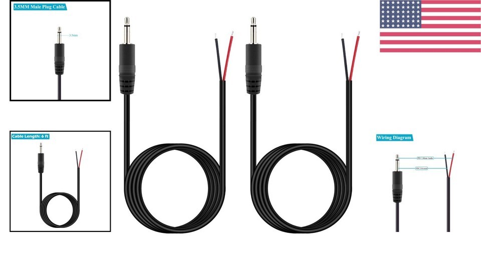 - Reliable 3.5mm Mono Male to Bare Wire Cable - 2 Pack, 6ft Each for DIY Projects