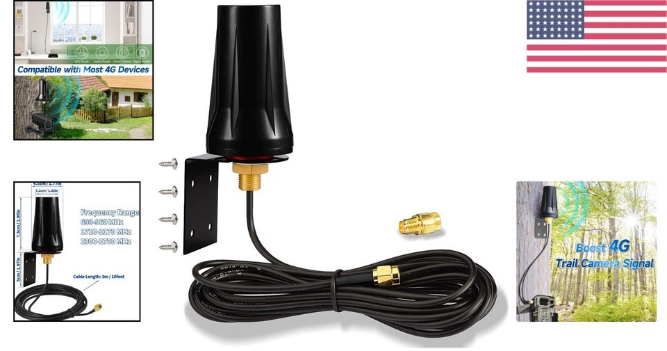 - Reliable 4G LTE Outdoor Antenna with 10ft Cable - For Mobile Routers & More