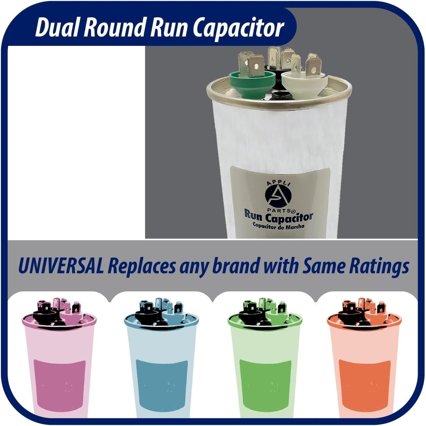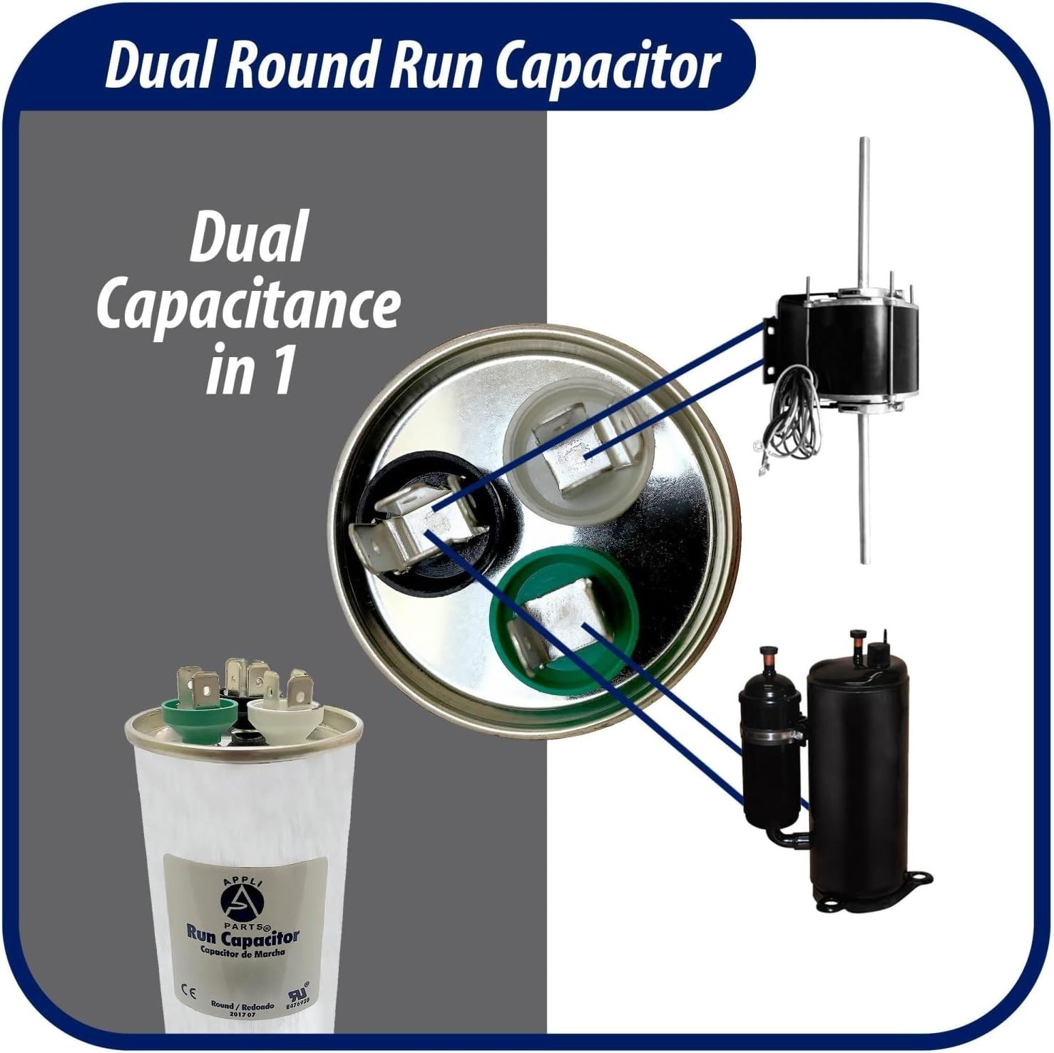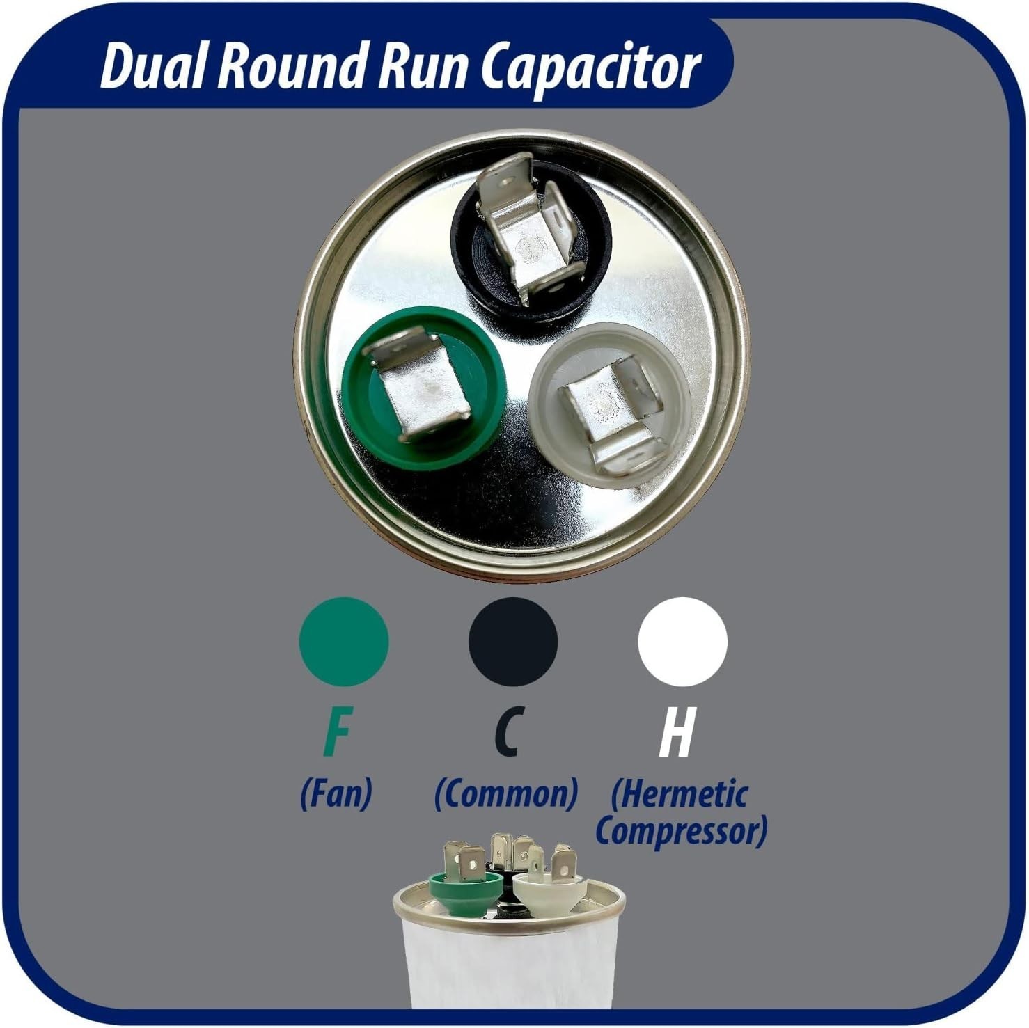 - Reliable Dual Run Capacitor 40+5 Mfd, 370/450 VAC for Superior HVAC Performance