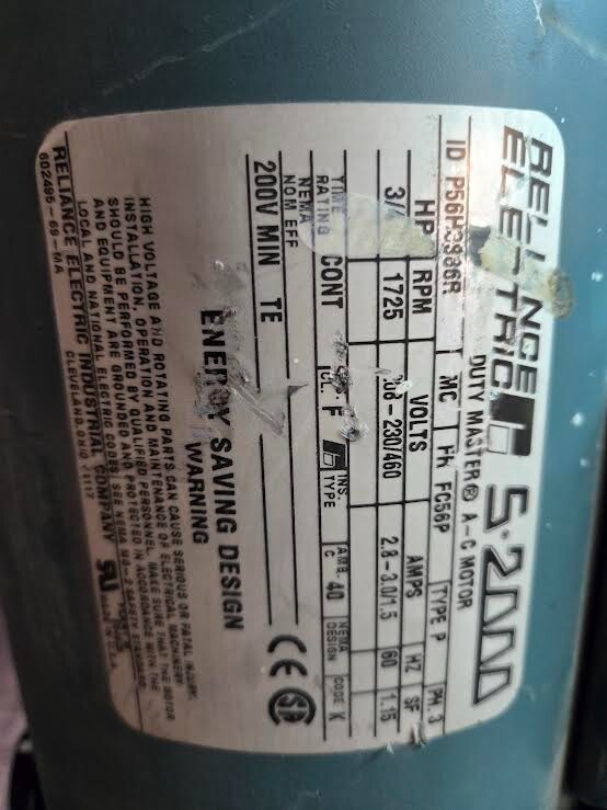 - RELIANCE S 2000P56H3886R 3/4HP MOTOR 2.8-3.0A 1725RPM FC56P 208-230/460 NEW $299