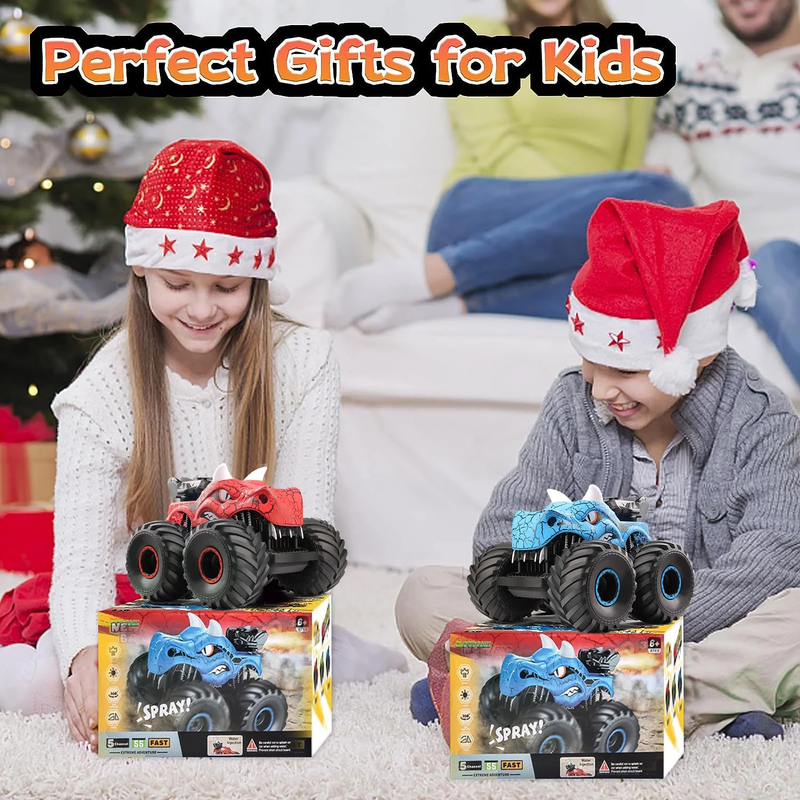 Remote Control Car, 2.4Ghz Monster Trucks for Boys Girls with Light, Sound Spray, Dinosaur Toys Gift for Kids 3 4 5 6 7 8, All Terrain RC Cars for Toddlers with 2 Batteries, Red