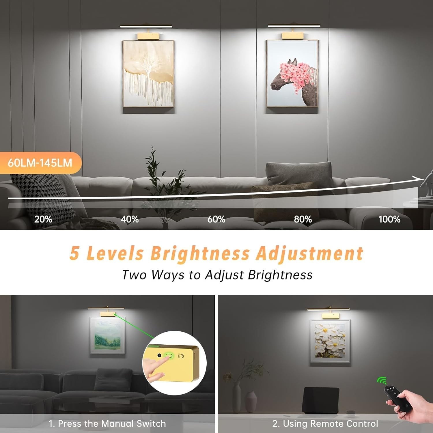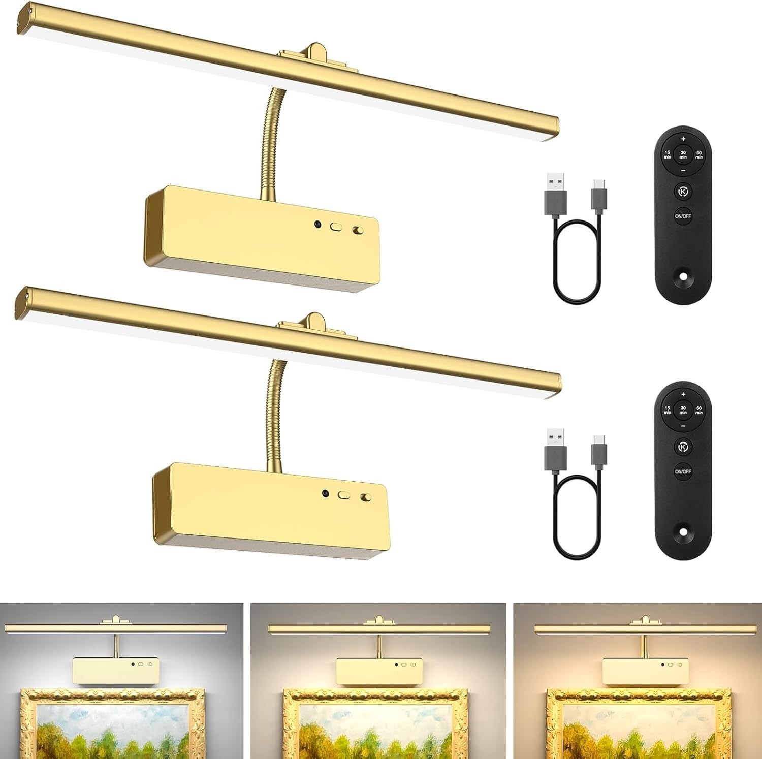 - Remote Control Picture Light - 15.35 Inch, Adjustable Colors & Brightness, Gold