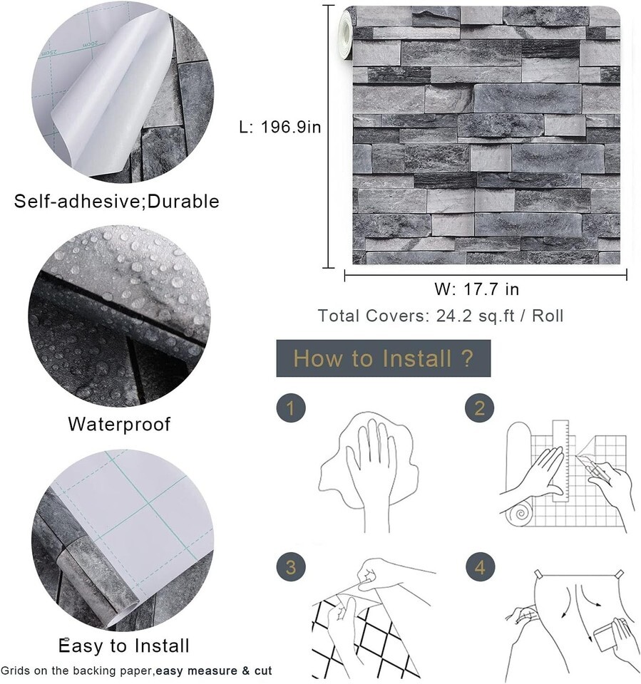 - Removable Faux Stone Brick Wallpaper - 24.27 Sq.Ft for Effortless Home Styling