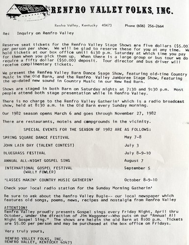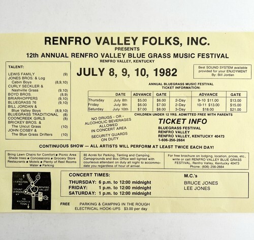Renfro Valley Kentucky 1982 Ephemera Lot Of 3 Blue Grass Program Bugle DWW7
