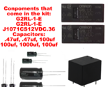 Relays that come in the kit: G2RL-1-E, G2RL-1-E, J1071CS12VDC.36 and Capacitors: .47, .47, 100, 100, 1000 1000
