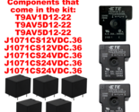 Components that come in the kit: T9AV1D12-22, T9AV5D12-22, T9AV5D12-22, J1071CS12VDC.36, J1071CS12VDC.36, J1071CS24VDC.36, J1071CS24VDC.36, and J1071CS24VDC.36