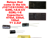 Relays that come in the kit: G2RL-1-E, G2RL-1A-E-CV, Capacitors: 470uf, 220uf, 100uf T1 2.2uf