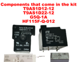 Repair Kit W10326370 W10410008 Whirlpool Dryer Board Repair Kit Relays that come in the kit:T9AS1D12-12, T9AS1D22-12, G5Q-1A, HF115F-Q-012 Comes with 4 relay components that repair 99% of all control boards. You must know how to solder with a soldering iron and you must know the correct orientation to install the parts. Capacitors and resistors only go one direction so don't install them backwards b/c they will not work.