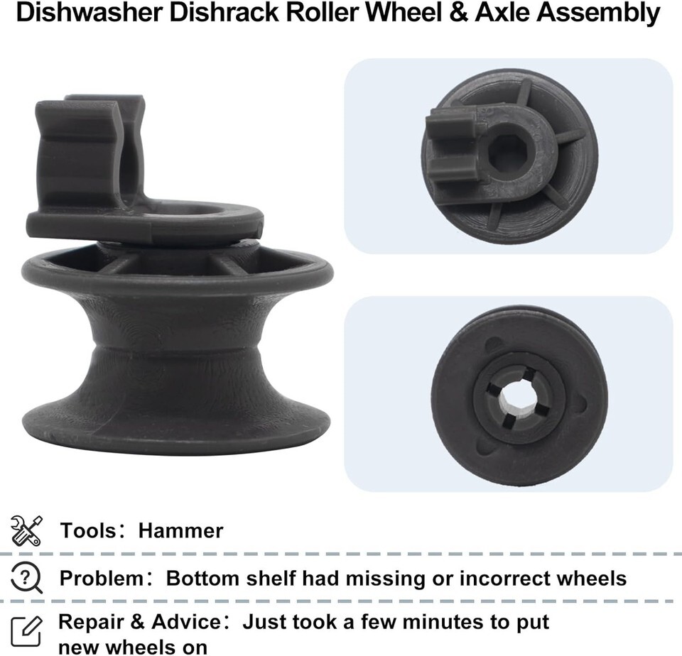 Upgrade your dishwasher experience today with these durable and reliable replacement wheels. Keep your dishes clean, and your dishwasher running smoothly!