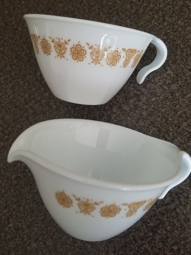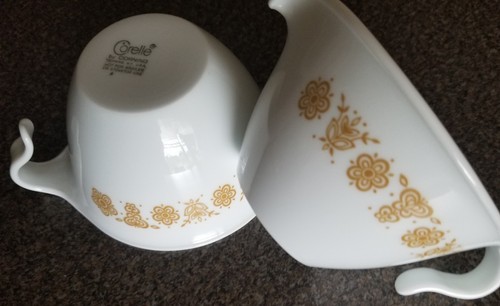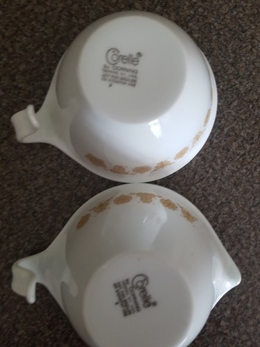 This sale is for wo (2) replacement pieces of Corelle by Corning Butterfly Gold Pattern Hook handle coffee cup measures approximately 4" diameter x 2.25" tall Creamer measures approximately 4" diameter x 2.25" tall 1970's Corelle Livingware Replacement pieces are in good ~ pre-owned condition Please view photos for a good description of these items Thank you!