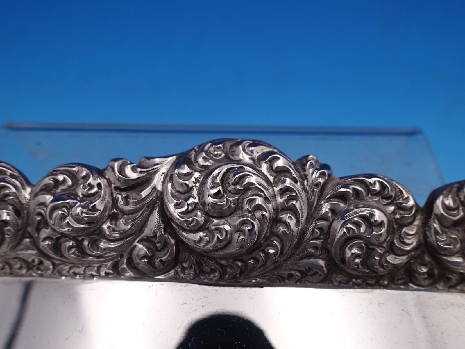 Wonderful Repousse by JFF and Co sterling silver pen tray marked #328. This tray measures 8" x 3 1/2" and weighs 2.8 troy ounces. It is not monogrammed and is in good estate condition as shown in the photos. Lovely!