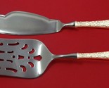 Add decadent design to your sterling silver tableware collection with our custom made sterling silver hollow handle with stainless Fish Serving Set in the pattern Repousse by Kirk. This set includes two versatile serving utensils: