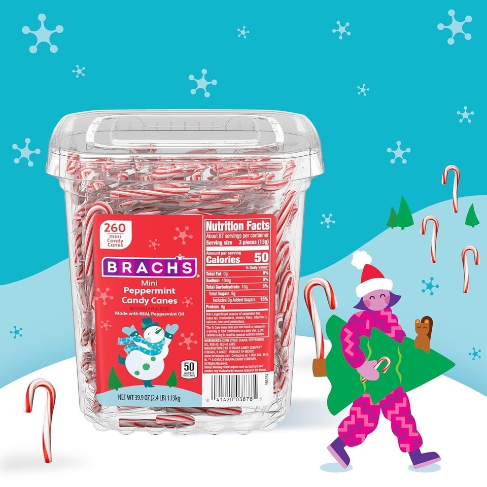 This resealable tub contains 260 mini candy canes, perfect for sharing with family and friends.
