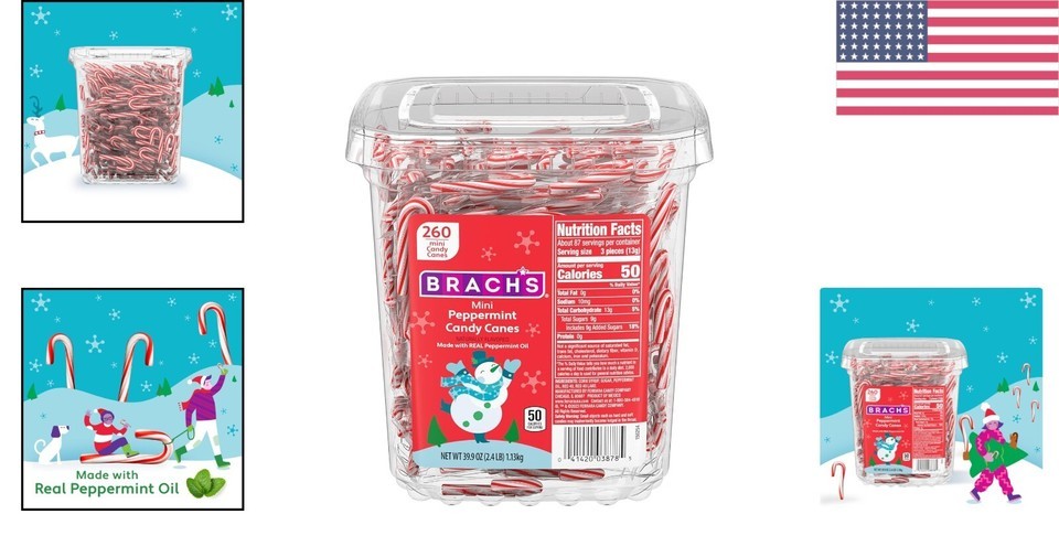 - Resealable Tub of Mini Candy Canes - 260 Peppermint Delights for Celebrations
