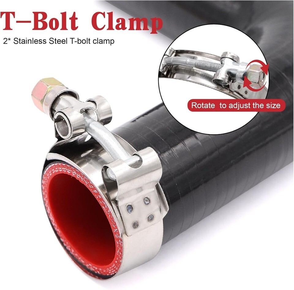 Crafted with customer satisfaction in mind, every hose comes with two T-Bolt clamps that allow for a perfect fit and no leaks. Trust in our silicone solution for durability, performance, and style. Make the smart choice for your vehicle - choose our silicone hose today!