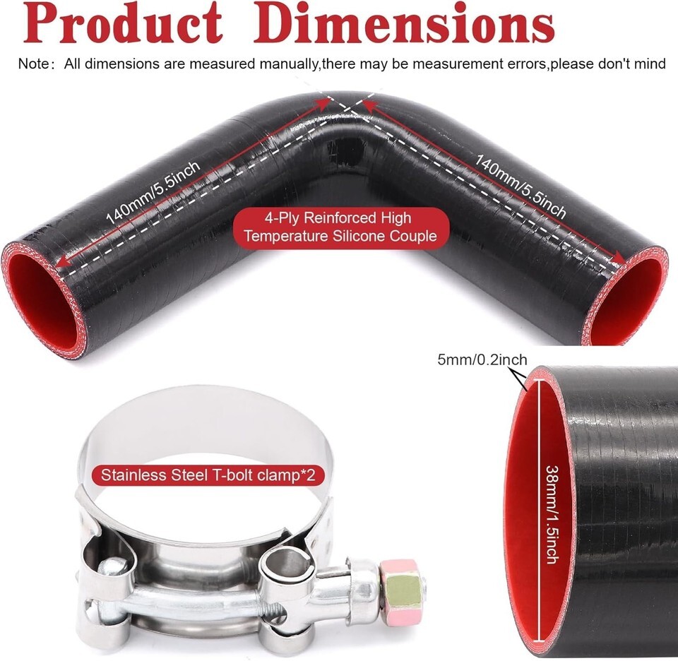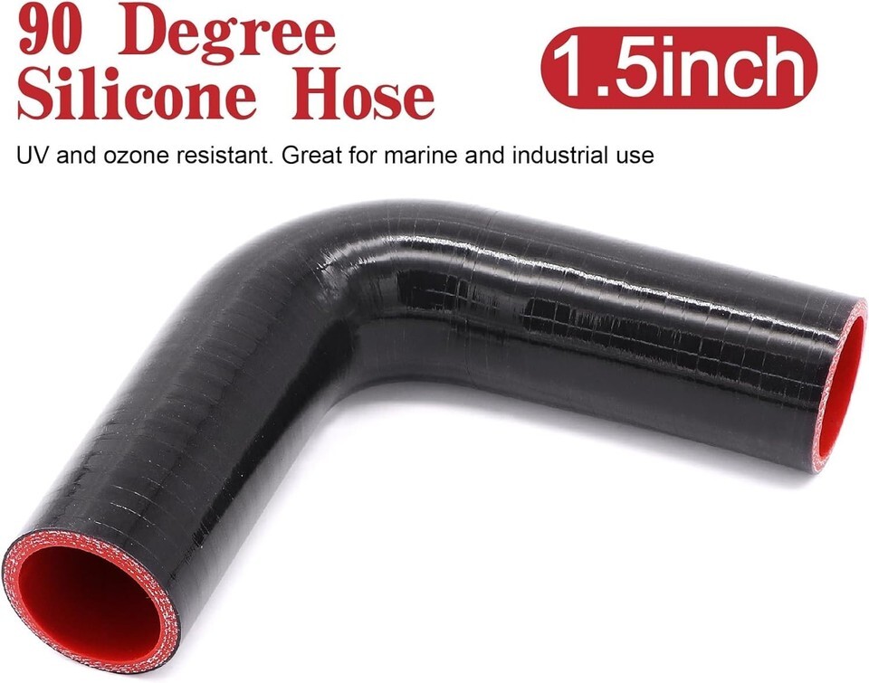 - Resilient 90° Elbow Silicone Hose 1.5” - High Temp Resistance, 2 T-Bolt Clamps