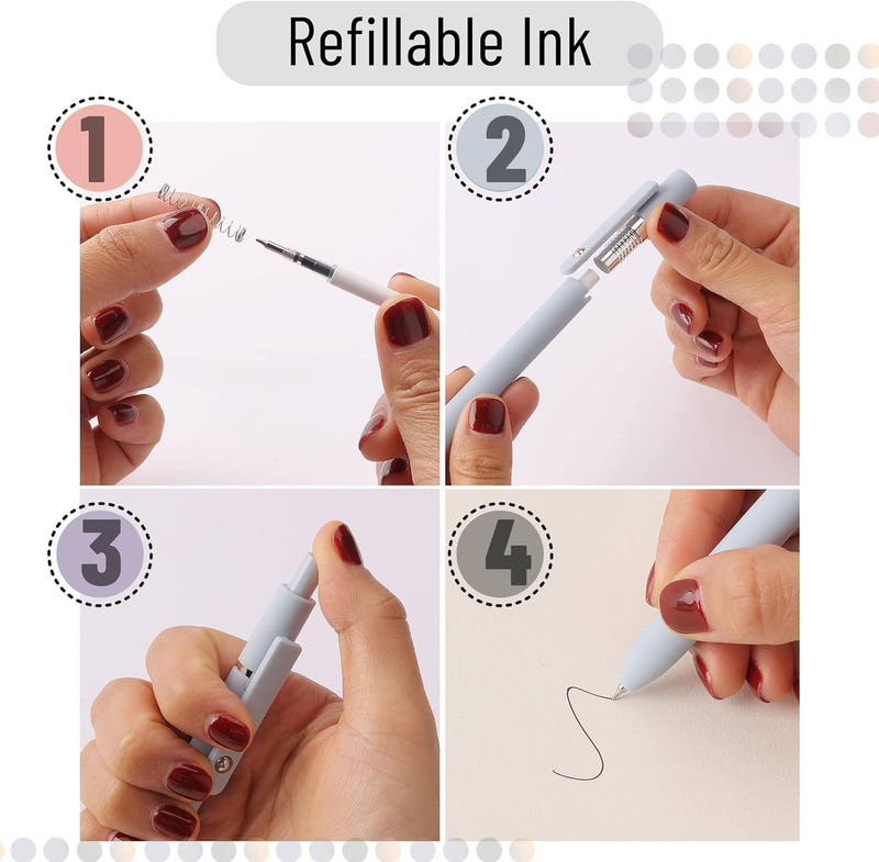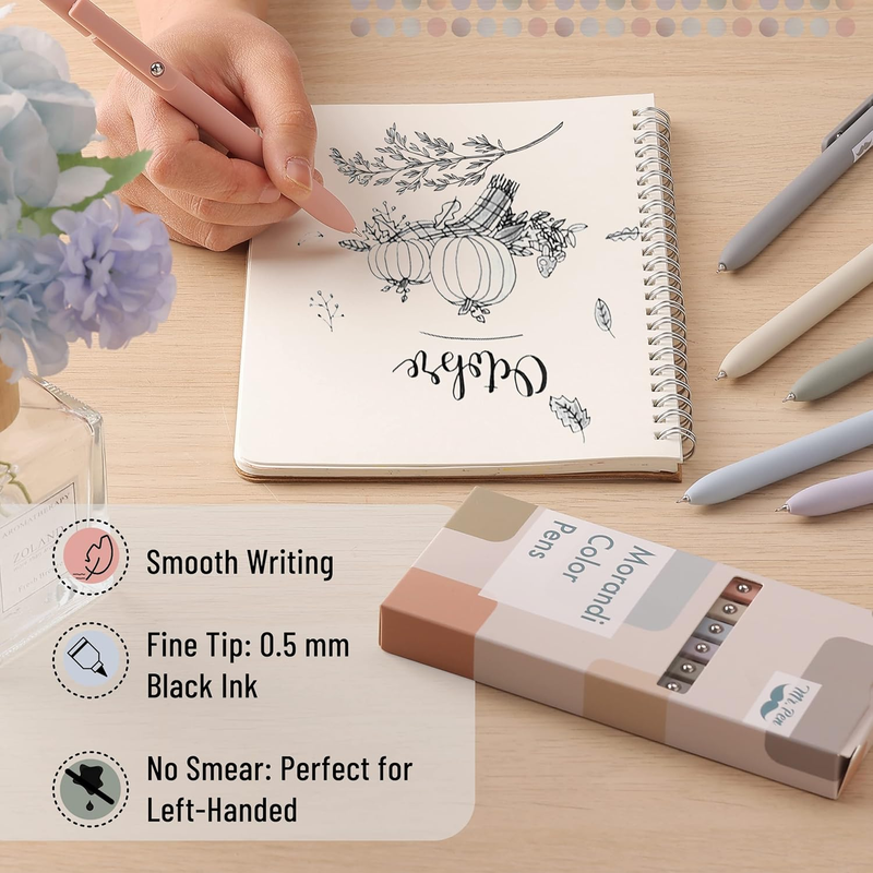 Retractable Fine Point Gel Pens, 6 Pack, Morandi Barrels, Fast Dry Ink, Cute Ae