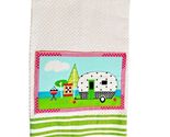 - Retro Camper Kitchen Towel Applique Trailer White Green Stripes Cotton Gift NEW