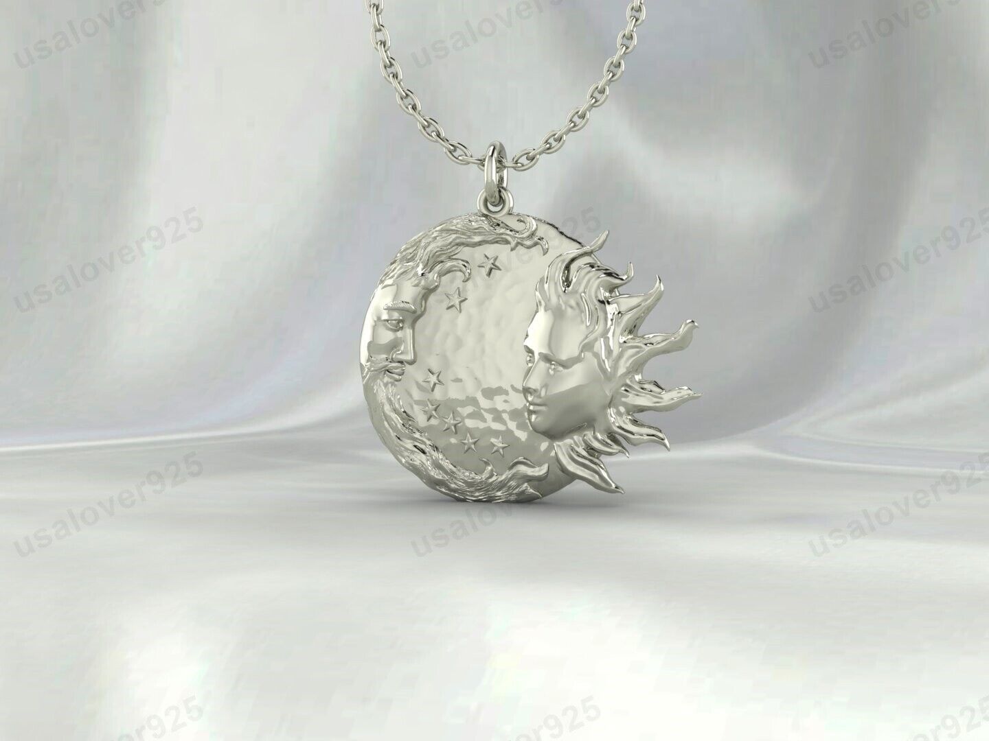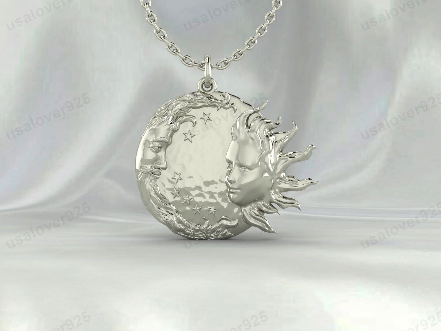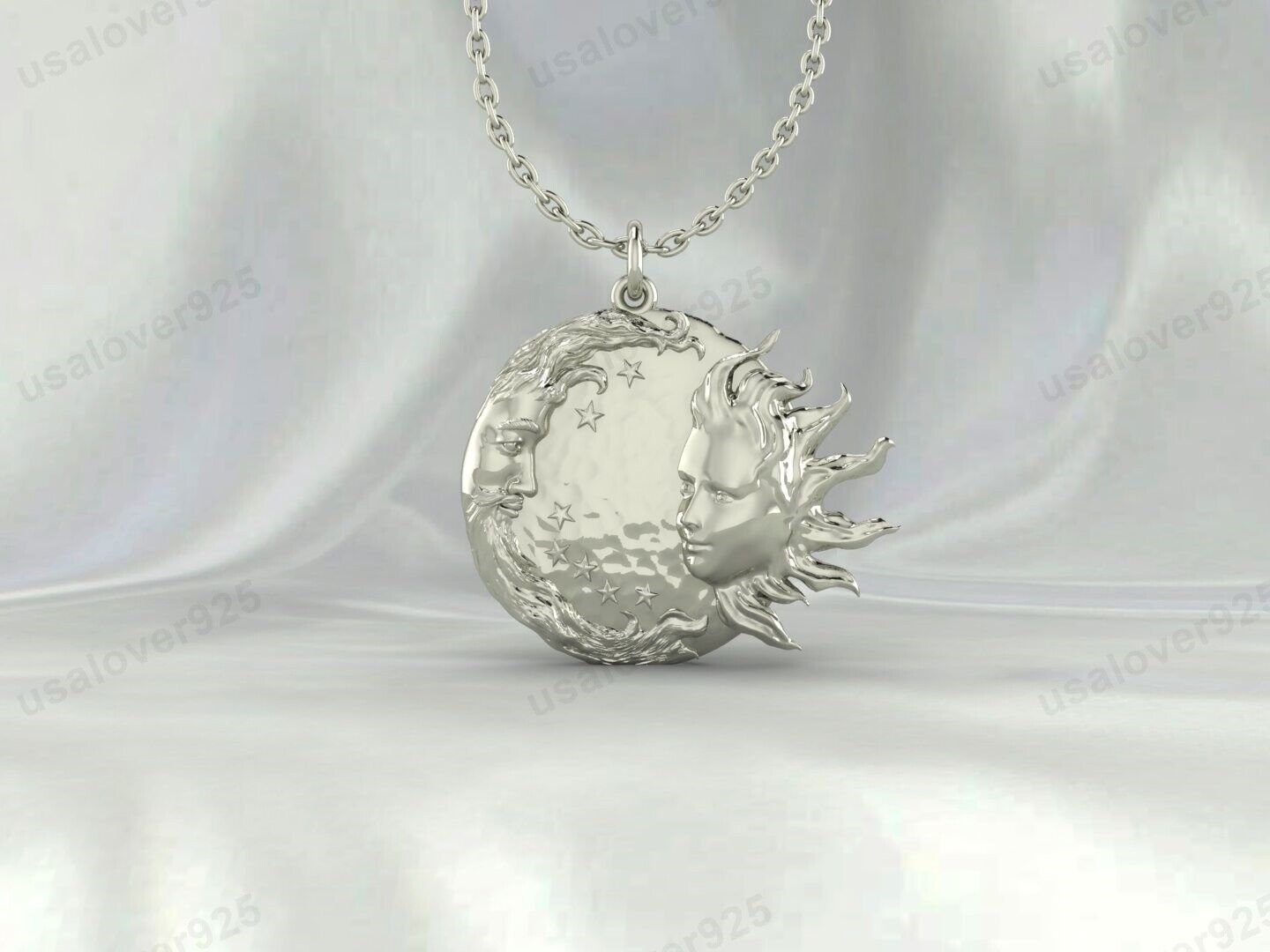 - Retro Unique Sun And Moon Design Handmade Modern Pendant Necklace Jewelry