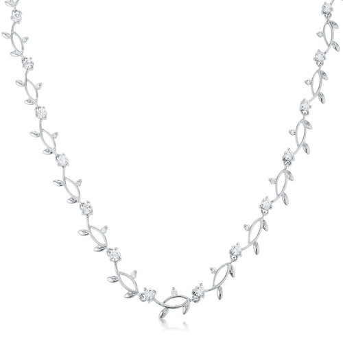 Add a touch of natural elegance with this feminine vine necklace. Plated with genuine rhodium this beautiful necklace sparkles for a timeless elegant look. Its the perfect bridal necklace and adds effortless style to any formal evening ensemble. Details: