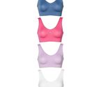 Enjoy unmatched comfort and seamless style with this fabulous 4?pack of Rhonda Shear Original Ahh Bras, size 1X (Chest?Petite Plus). This curated bundle includes four soft, tag?free bras in White, Hot Pink, Lavender, and Blue?ideal for lounging, light support, or daily wear. Crafted from Rhonda?s signature stretch-knit, these wire-free leisure bras deliver gentle lift, high comfort, and breathable wear.
