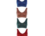 Discover everyday comfort with this 4-pack of Rhonda Shear Original Ahh Bras, size SMALL (Chest/Petite, in a curated assortment: beige, green, red, and blue. Lightweight, seamless, and wire-free, these leisure bras feature a V-neck design, wide straps, and a smooth ribbed under-bust band?all without seams or tags?for a second-skin feel.