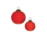 Festive Red Tone with Clear Finish A classic yet sophisticated color combination for the holiday season. Ribbed Glass Texture Adds depth and elegance to your decor with its unique, textured surface. Set of 12 Pieces Includes two assorted sizes for versatile styling options. Suitable for indoor use only