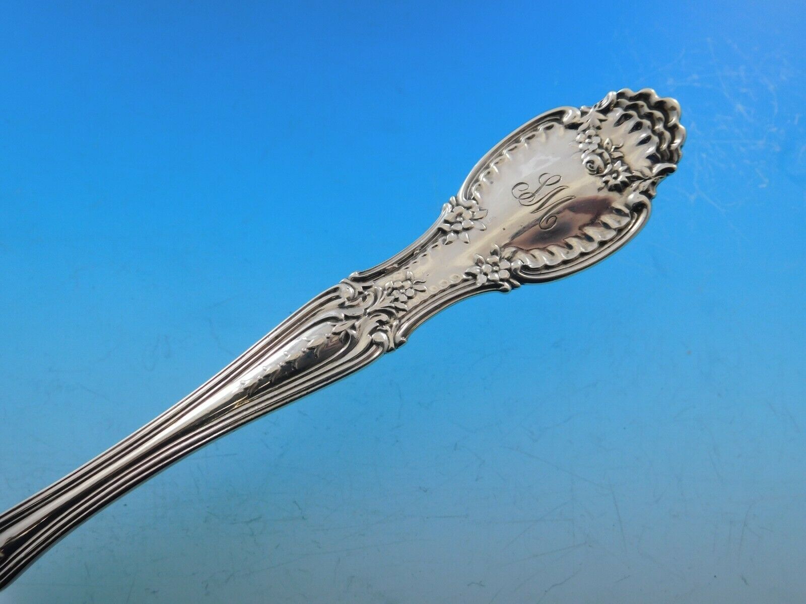 Sterling silver Ice Spoon 9 1/4" in the pattern Richelieu By Tiffany Co.. It is monogrammed (monos vary) and is in excellent condition.