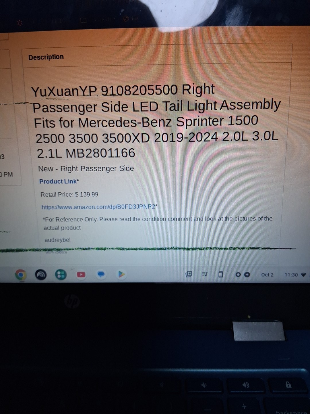 - Right Side LED Tail Light Rear Lamp for Mercedes/Freightliner Sprinter 19-25