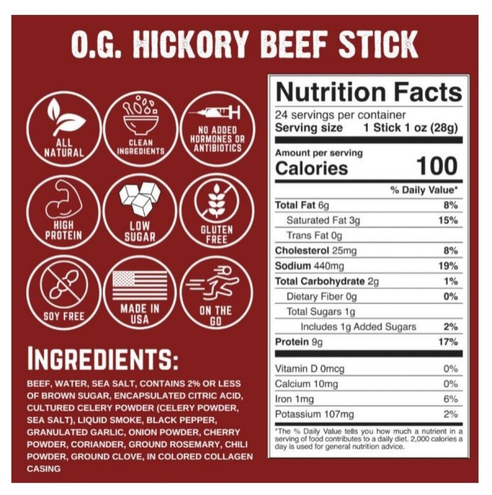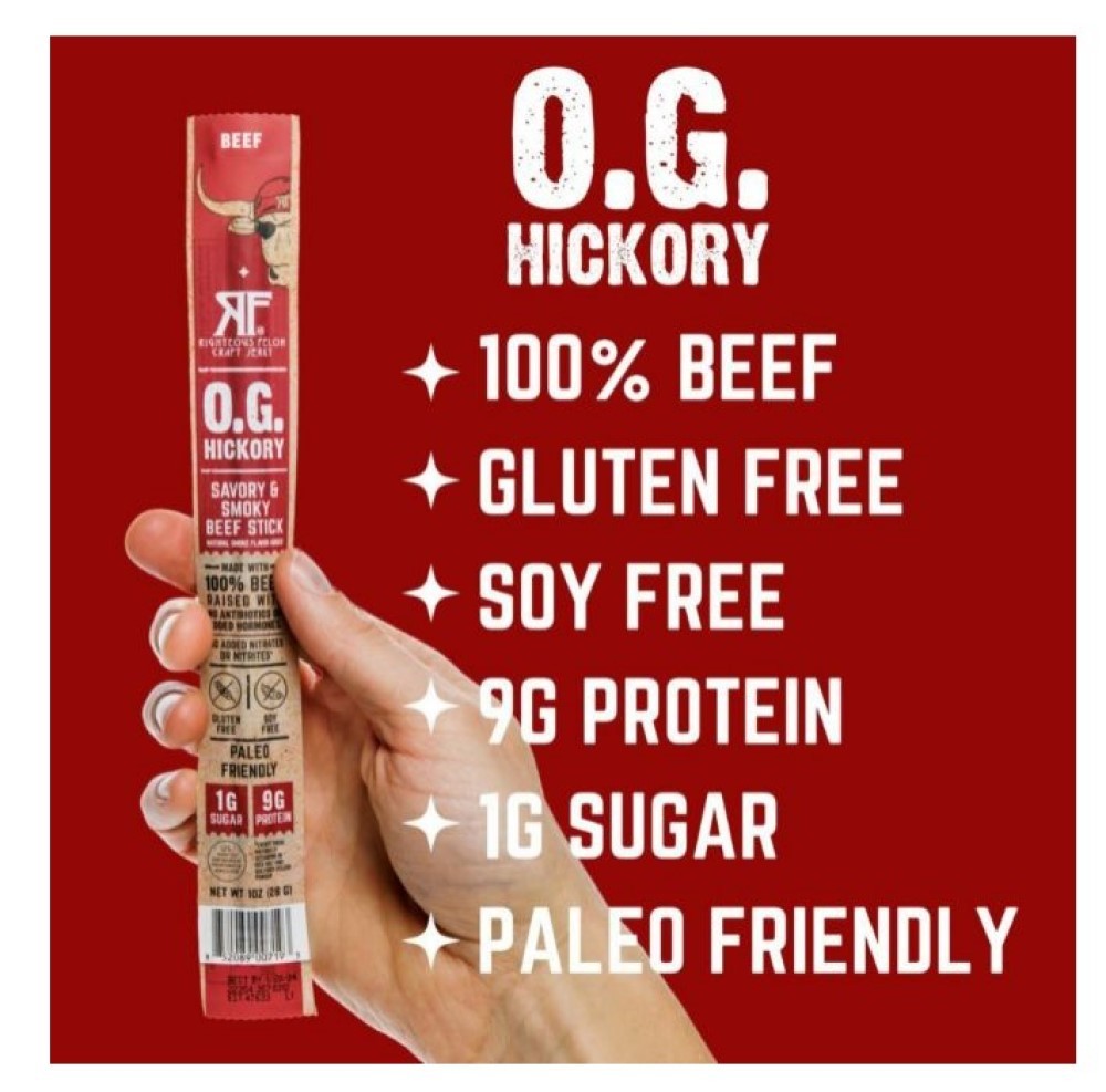 This sale transaction is for a Righteous Felon OG-STICK-24 O.G. Hickory 100% Beef Stick Smoky Savory 1 oz., 1 Single Stick. Included exactly what is pictured.