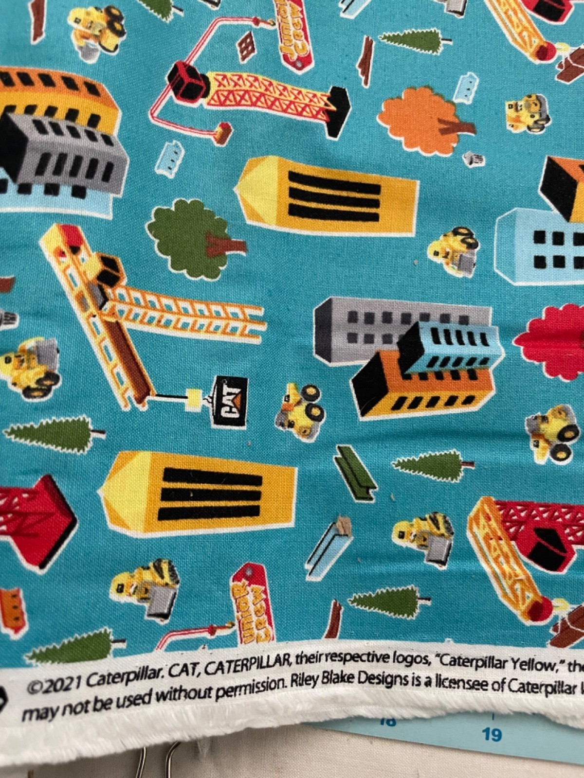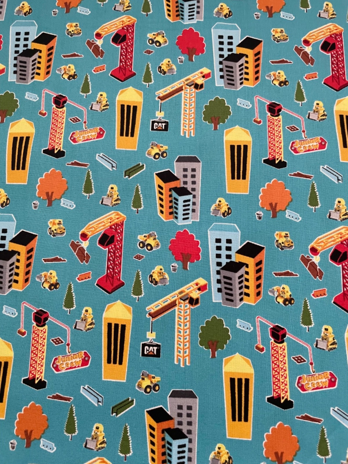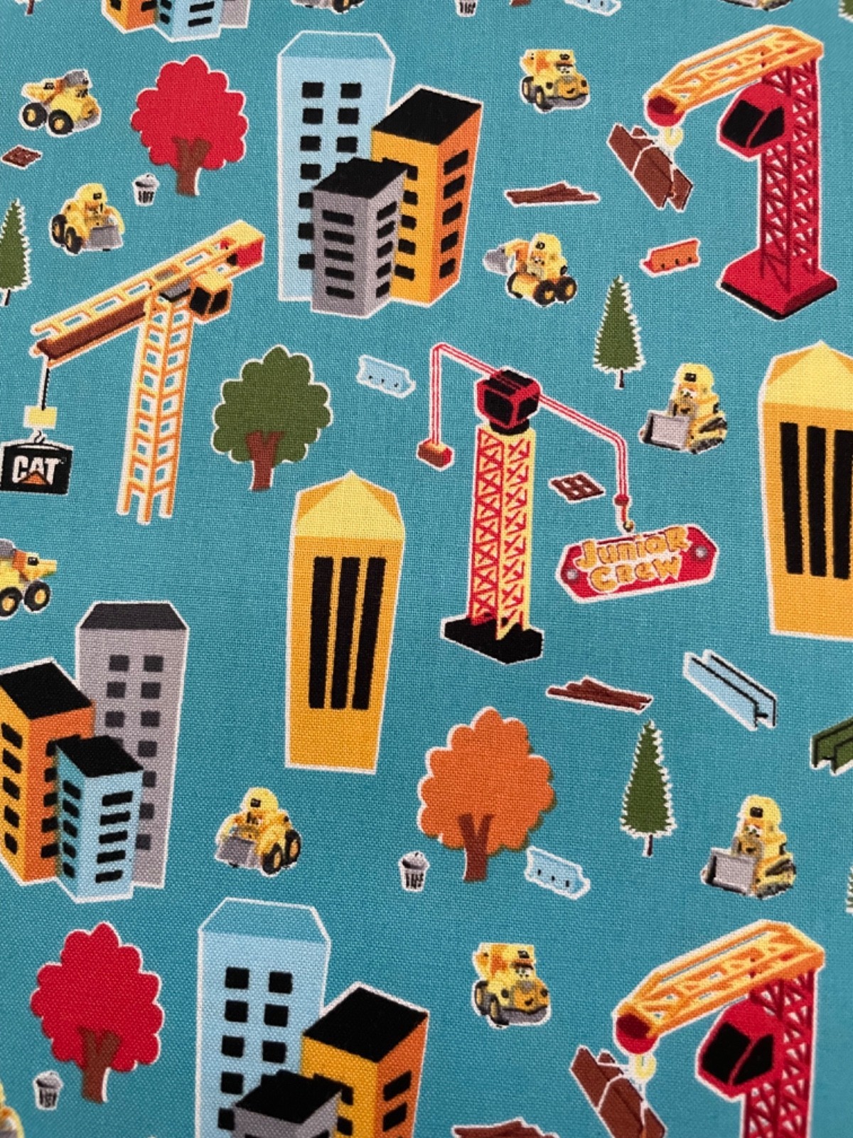 - Riley Blake Construction Cranes and Sky Scrappers Cotton Fabric on Blue bt1/2 yd