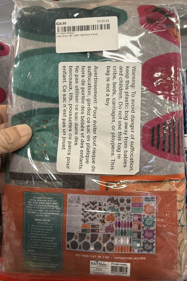 Riley Blake Little Witch Party Felt Panel Halloween Pumpkin Bat Ghost Spider Web.
