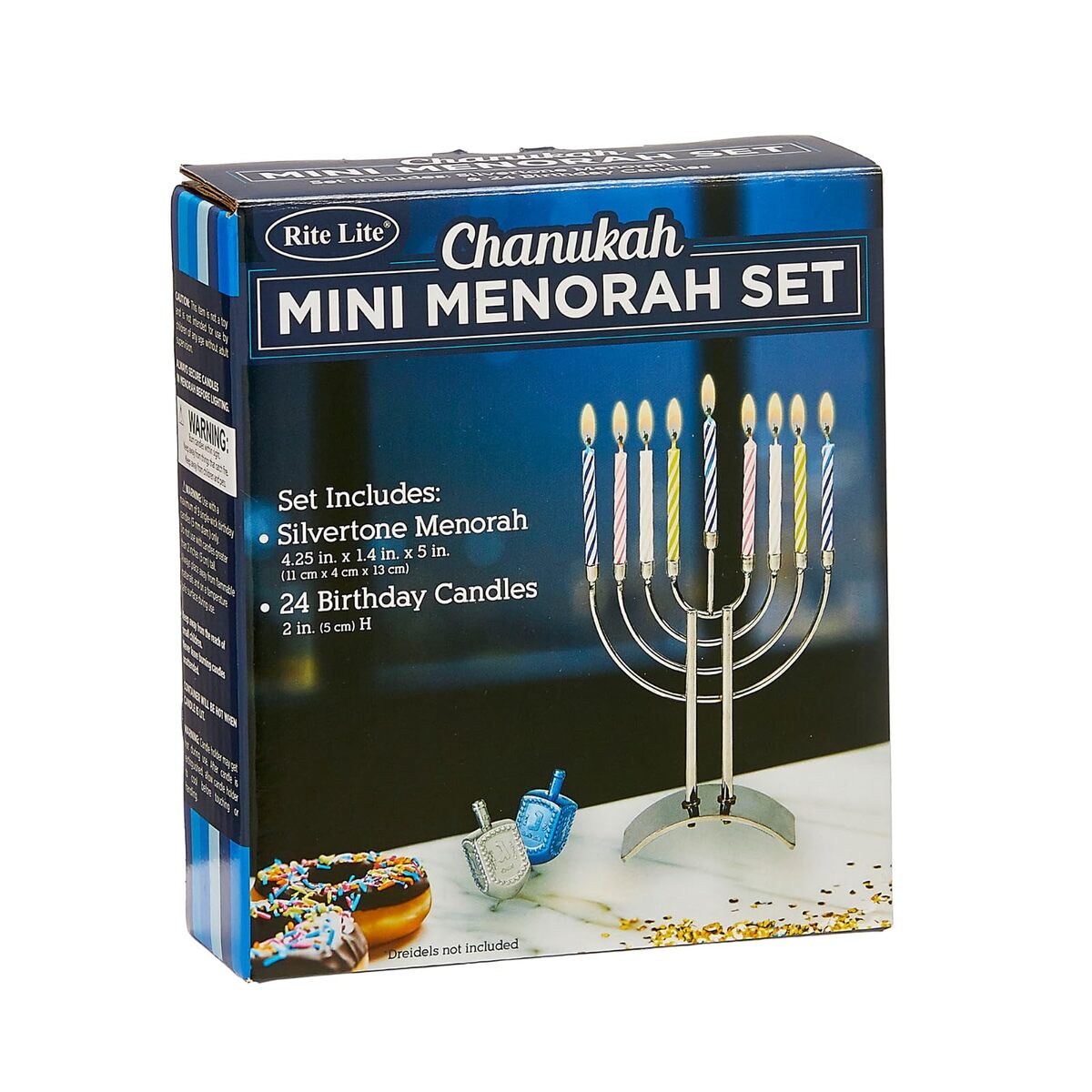- Rite Lite Mini Menorah Set with Birthday Candles - Chrome-Plated Menorah for Eas