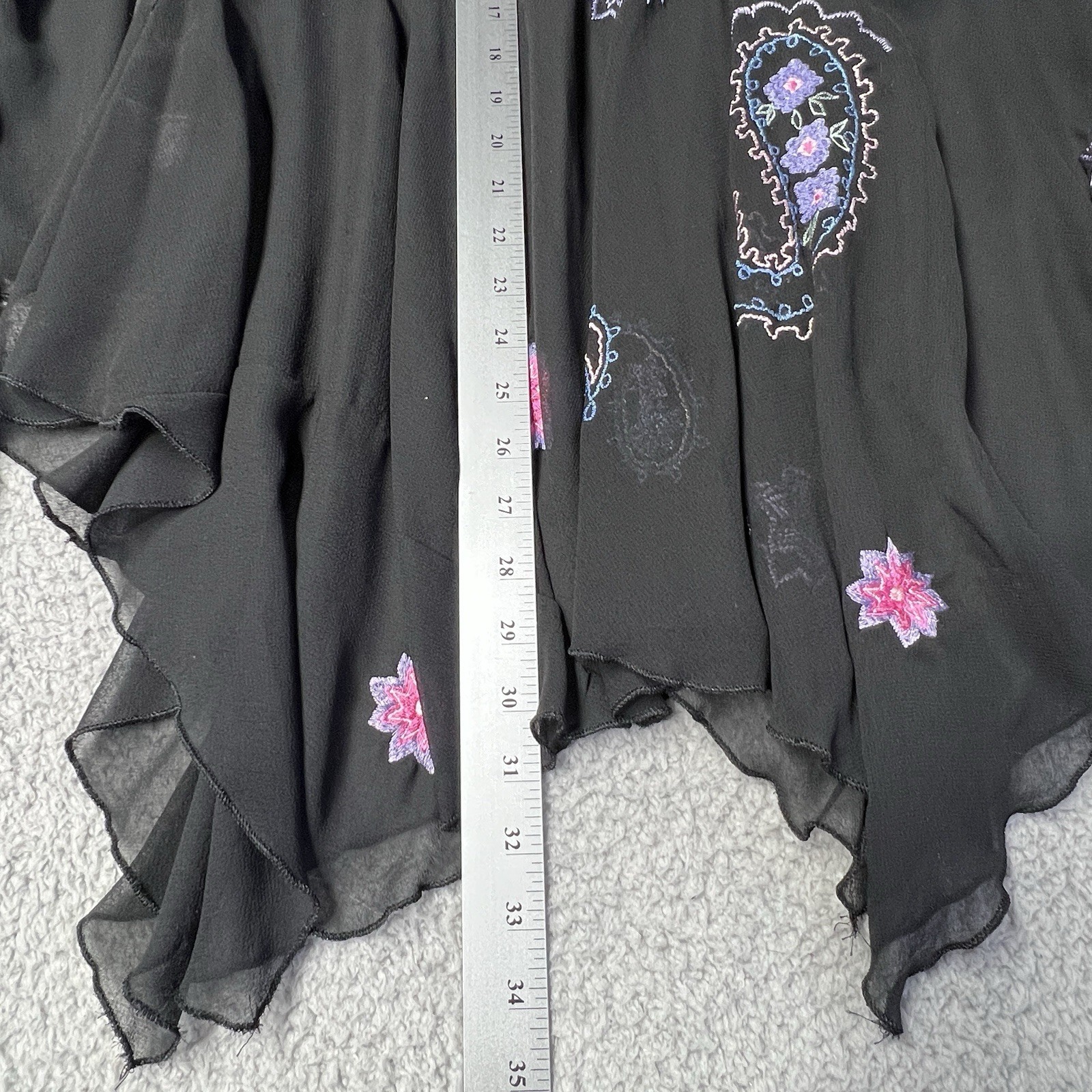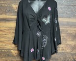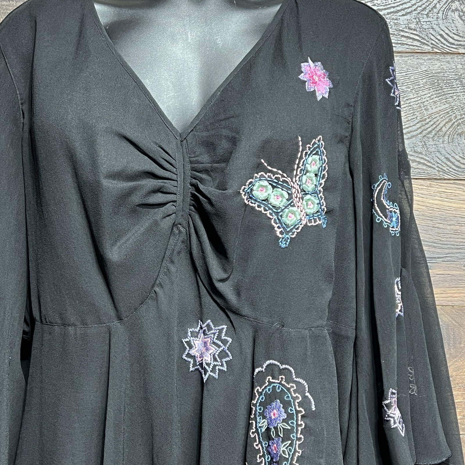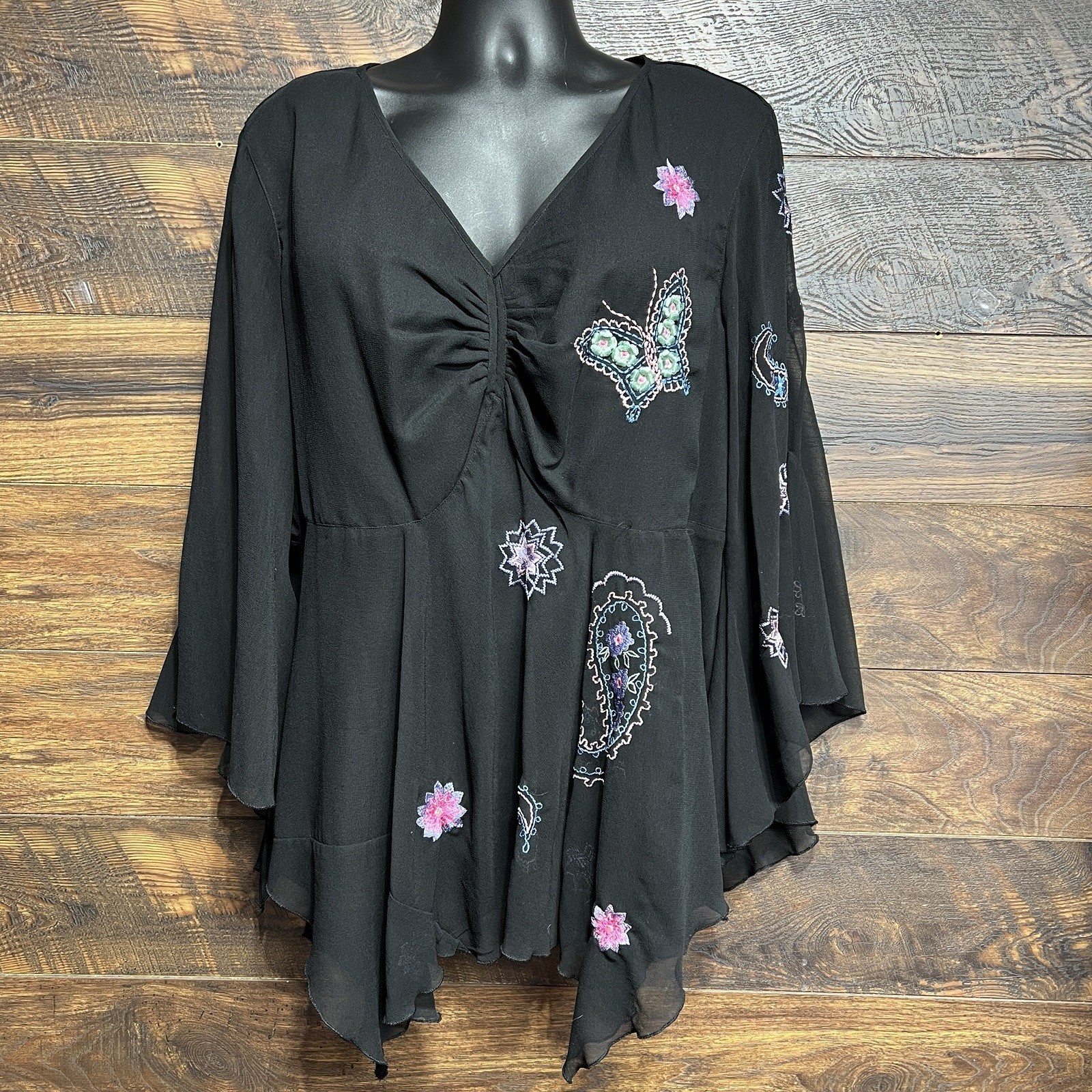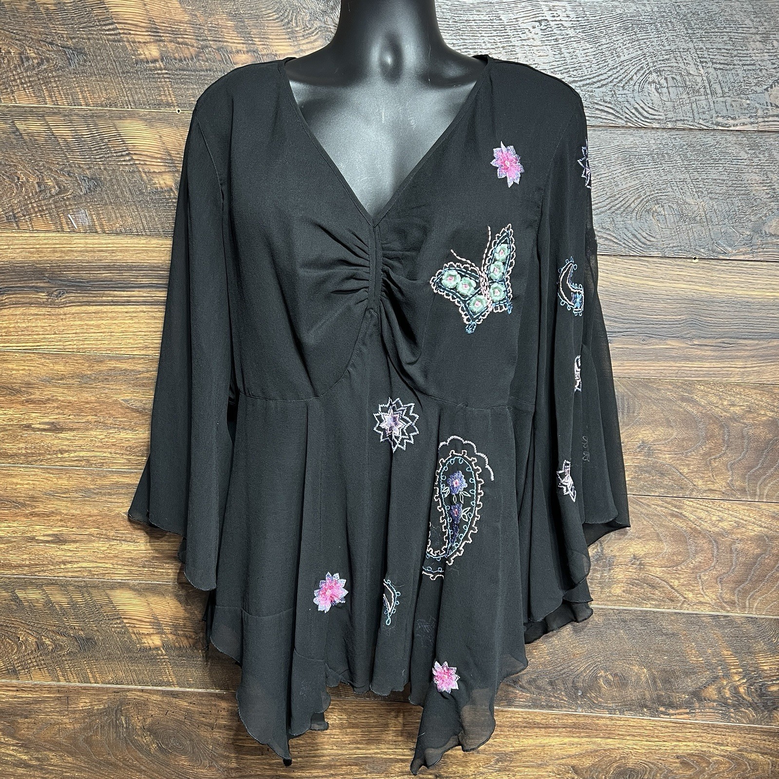 Roamans Blouse Womens Size 26W Black Boho Witchy Whimsigoth Embroidered Flare