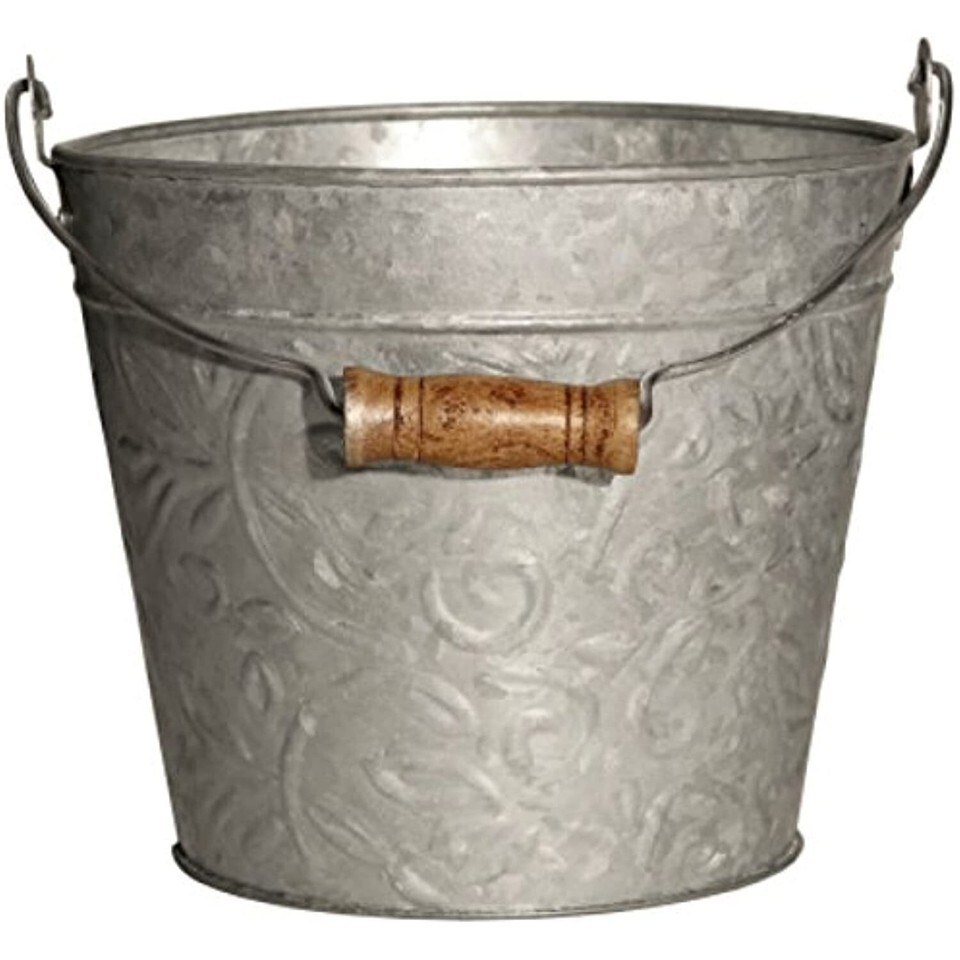 - Robert Allen Mpt01631 Floral Metal Planter With Handle, 8", Galvanized