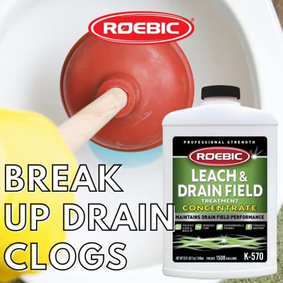 Product Description Introducing Leach Drain Field Opener, a product targeting the primary cause for septic system failures, clogged leach and drain fields. Our new K-570 formulation builds on the success of our K-57. With K-570 we have improved performance with the addition of our patented Roetech bacteria. These specialized bacteria are the same bacteria used in our professional formulations, and are used in municipal wastewater treatment facilities throughout the country. From the Manufacturer For over 50 years Roebic has developed high quality products engineered for optimum performance targeting specific problems and troublesome areas within the septic system. Trust Roebic. The Septic Professionals, for all your septic and drain care needs.