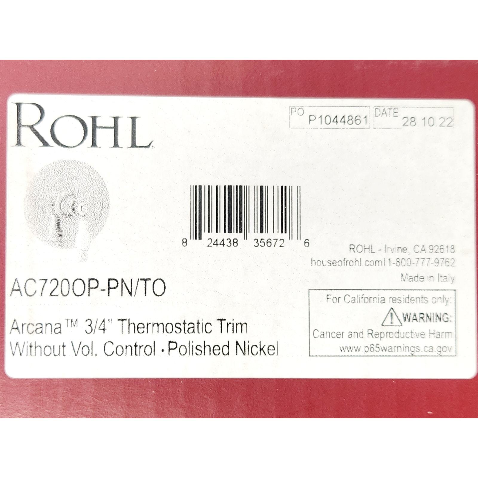 Thank you for visiting! All orders are shipped for FREE within the United States. For international sales, shipping costs will be added to the purchase price. Please contact us with your shipping address for a parcel quote. Orders before 2PM CST will be shipped the same day. Our items have never been installed and are sold as open-box products, unless otherwise noted. While the boxes may have slight damage, as shown in the pictures, the items themselves are carefully inspected to ensure they are not damaged or missing any pieces. We accept returns on items that have not been installed or damaged within 14 days of your purchase. In the rare event that an item is defective upon installation or has any blemishes not previously stated in the description, we will discuss a refund or exchange. Please, reach out if you have any issues that need to be addressed. Our goal is to achieve complete customer satisfaction. We appreciate you viewing this listing and look forward to serving you. Rohl AC720OP-PN/TO Arcana Thermostatic Valve Trim Less Rough In - Polished Nickel Thermostatic Valve Trim Only Classic Thermostatic Valve that controls water temperature. A separate volume control will be needed to control water flow. Premier finishing process - finishes will resist corrosion and tarnishing through everyday use Coordinates with products from the Arcana line Single lever handle constructed of brass included Rough-in valve not included All necessary mounting hardware is included Thermostatic valve trim - single cartridge controls water temperature only Separate volume control required Valve Trim Height: 6-5/16" (bottom to top) Valve Trim Width: 6-5/16" (left to right)