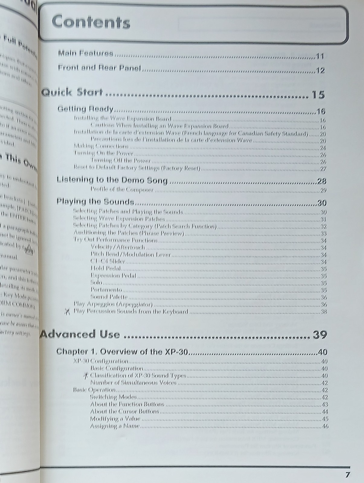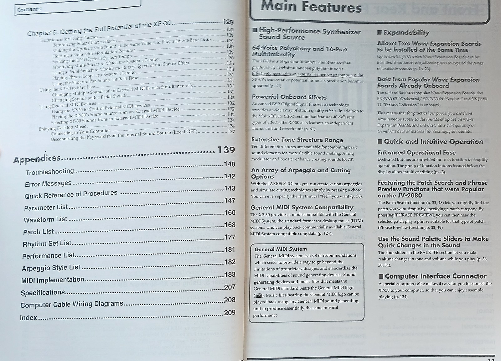 This large book is complete and goes into details with playing and programming your XP-30. This is an original Roland document, printed in Japan!
