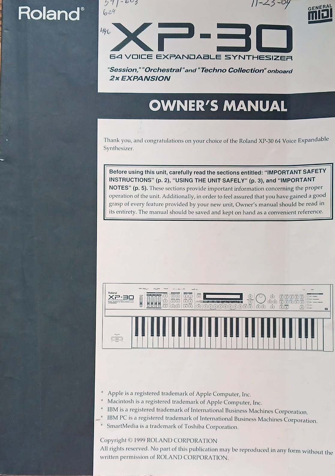 - Roland XP-30 Synthesizer Music Workstation Keyboard Original Owner's Manual Book