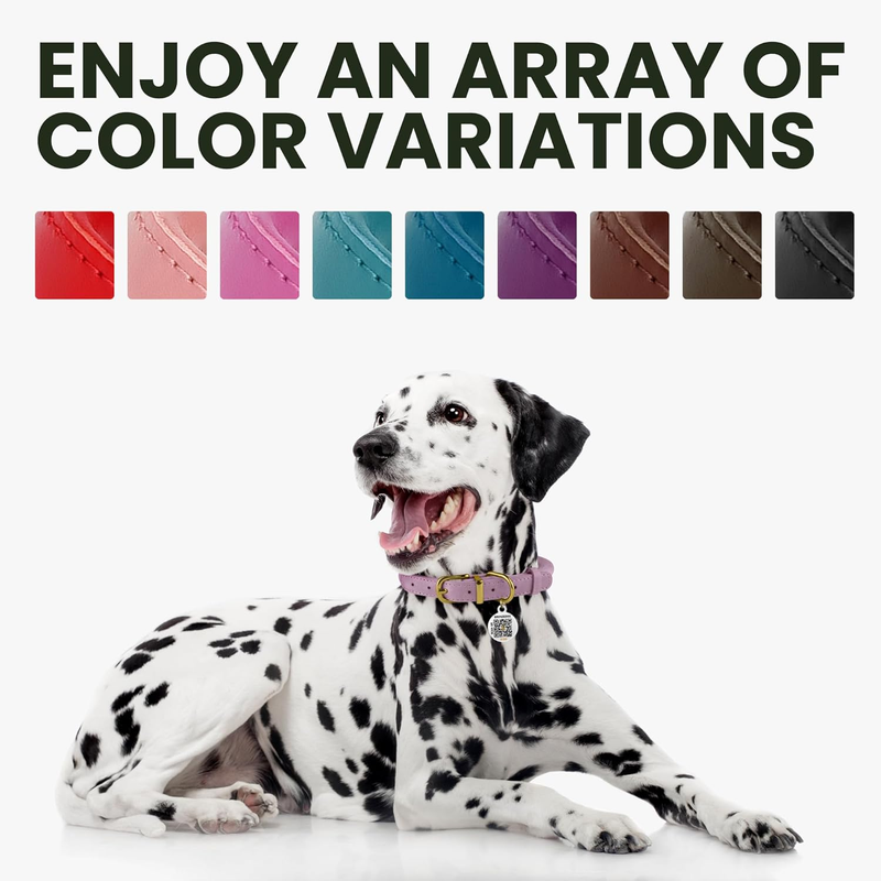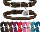 Rolled Leather Dog Collar with QR ID Dog Tag round Personalized Pet C