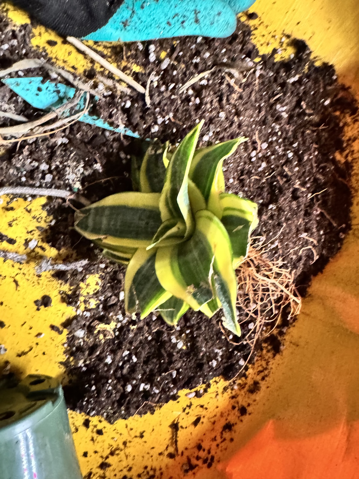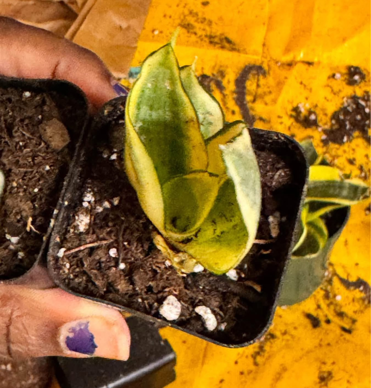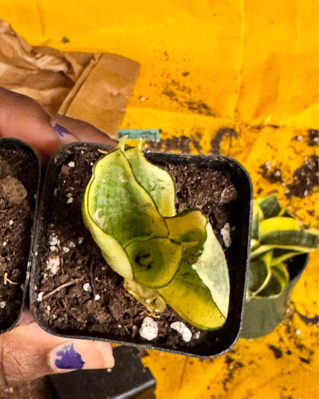 - Rooted Gold Star sansevieria trifasciata 'golden hahnii 'golden birds nest' pup